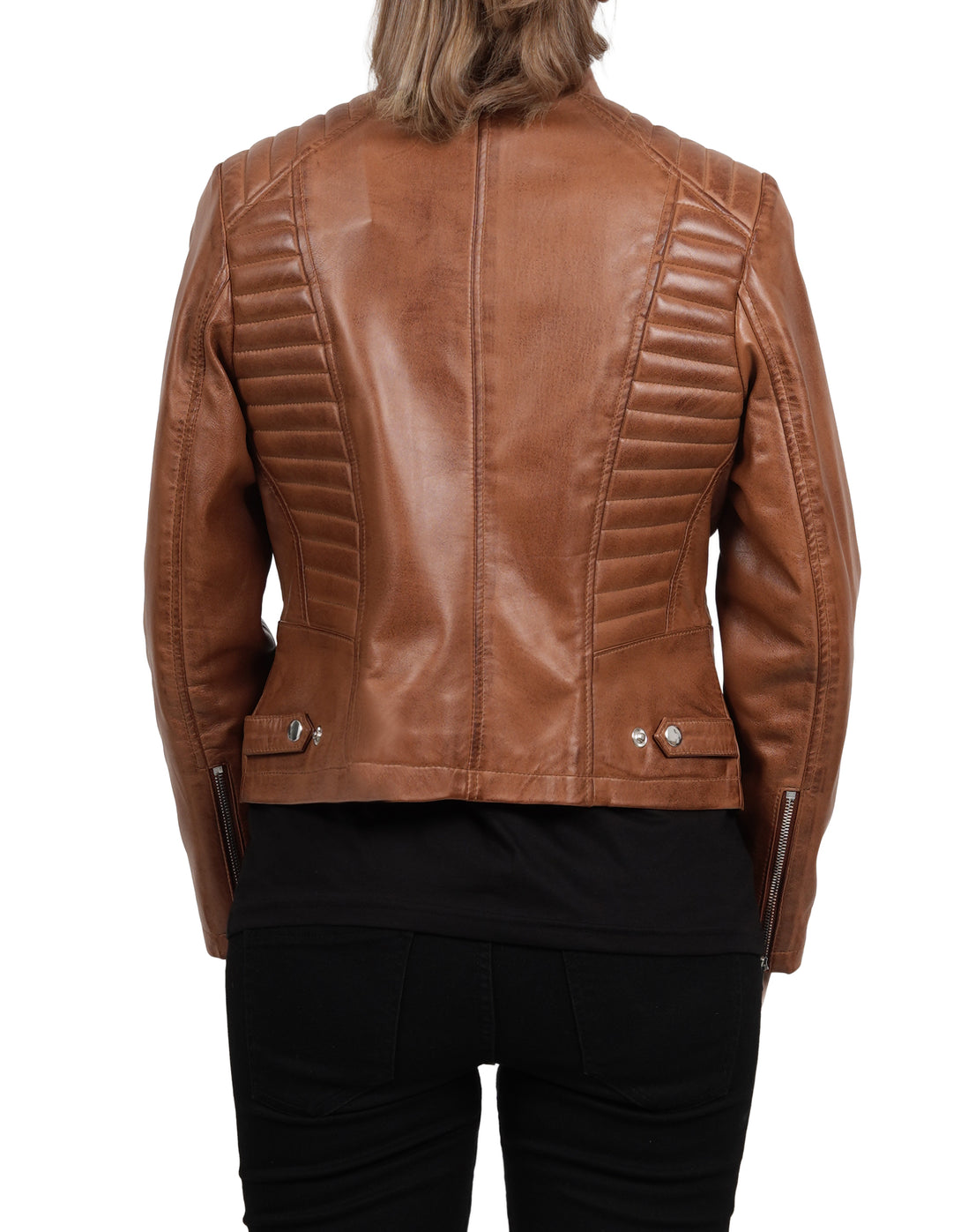 Blouson en cuir femme marron café racer