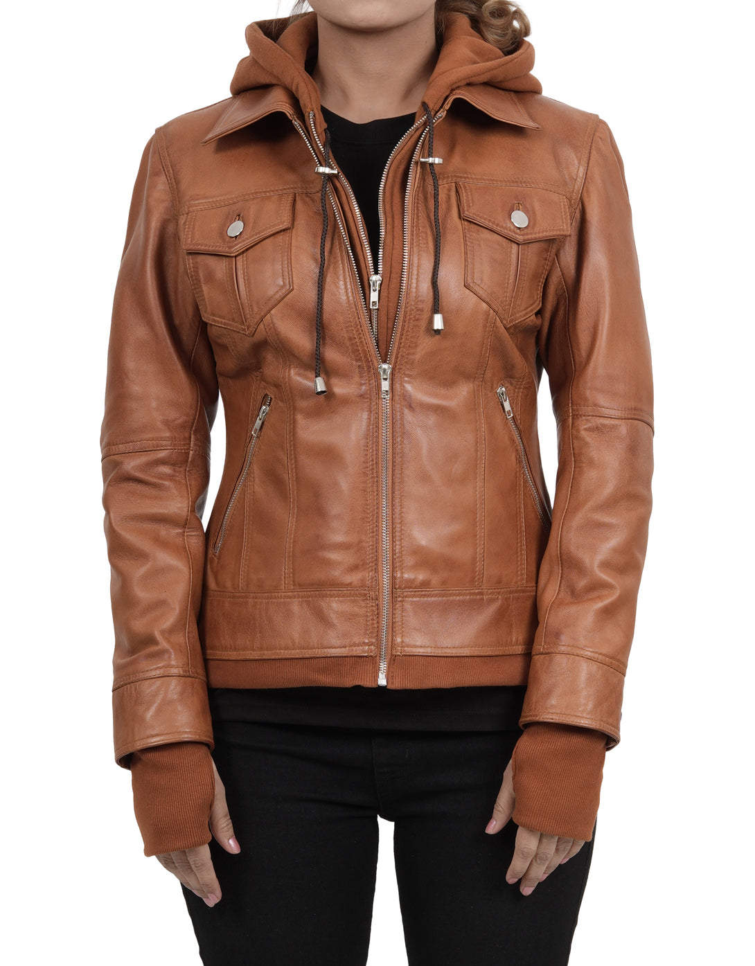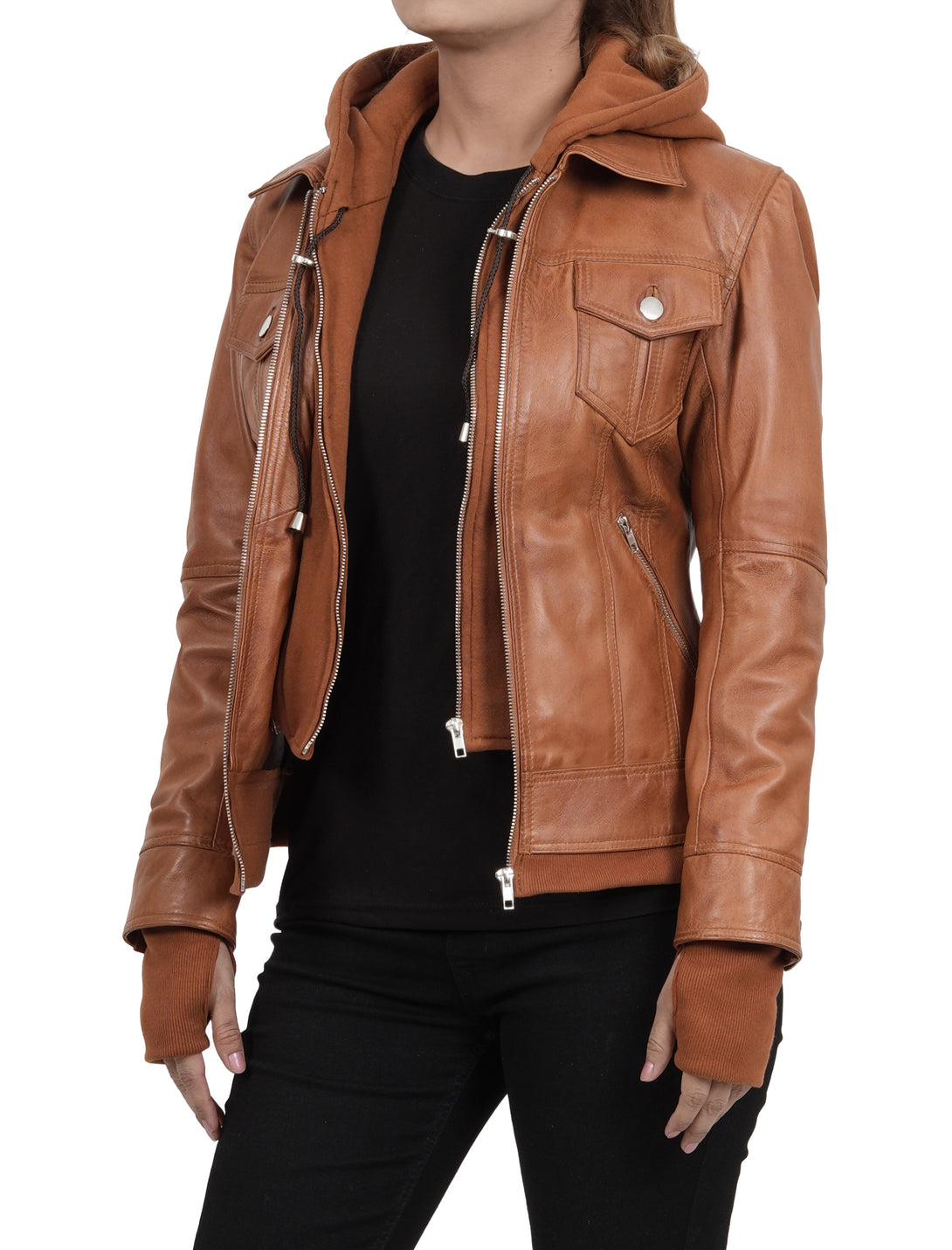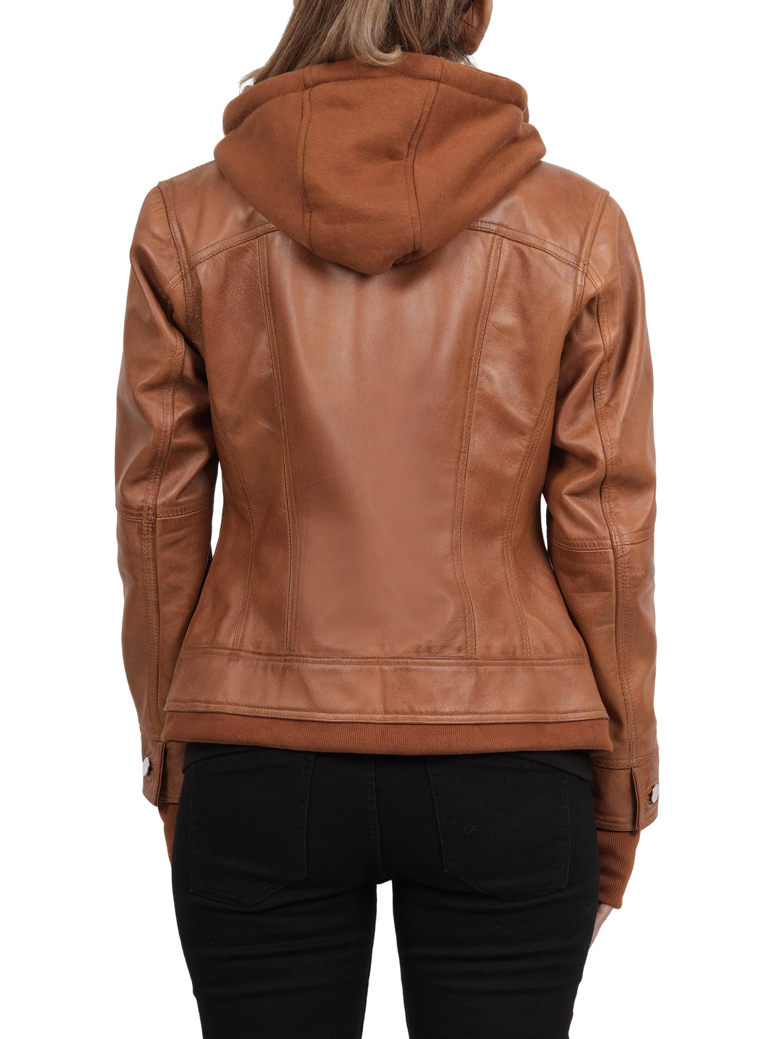 Blouson aviateur en cuir ciré beige Tralee pour femme avec capuche amovible